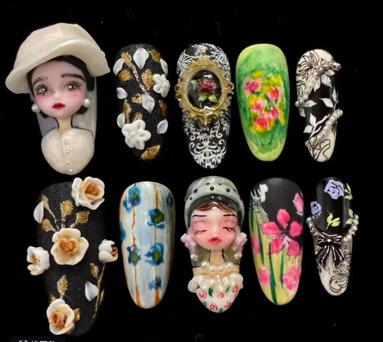 Each ManiRococo nail is a miniature canvas where Rococo elegance meets contemporary artistry. Hand-sculpted with meticulous attention to detail, every piece captures the ornate beauty of 18th-century European designādelicate florals, gilded accents, and sculptural elements that transform your fingertips into wearable masterpieces. These are not simply nails; they are tiny works of art, crafted to tell a story with every gesture.